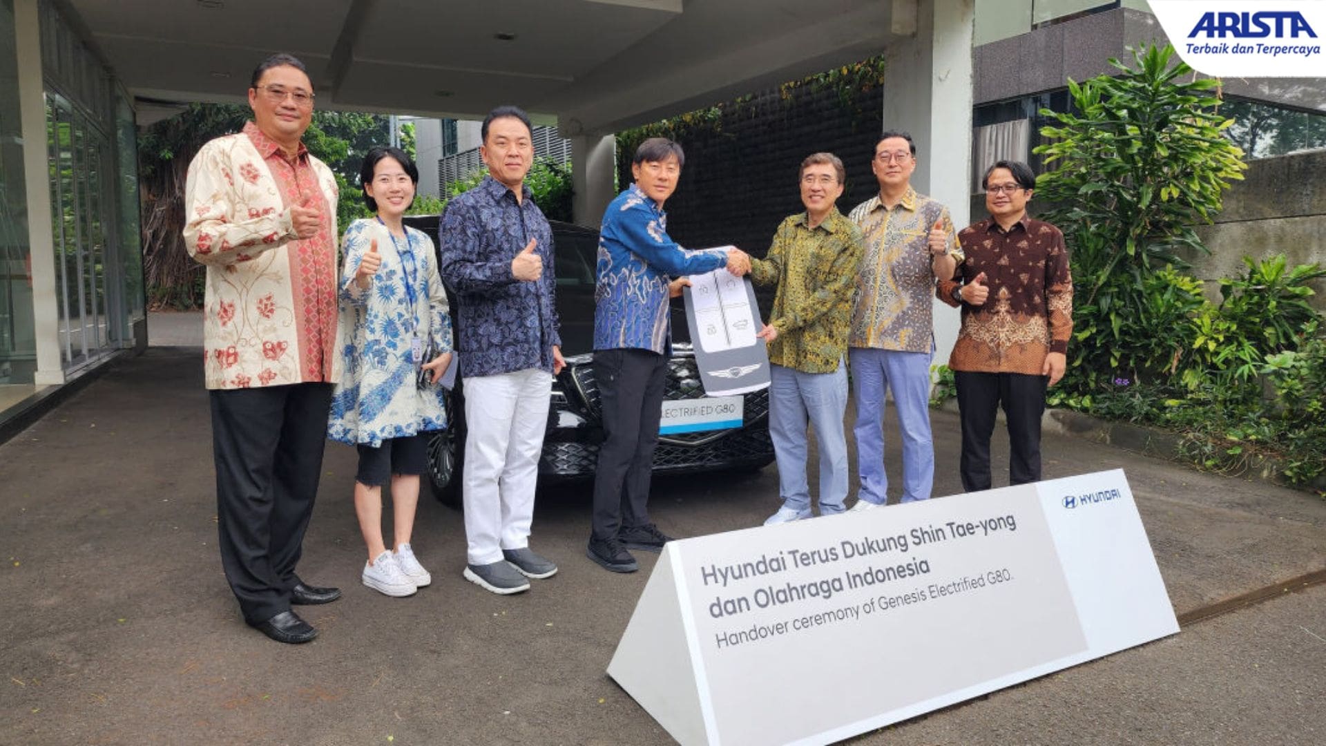 PT Hyundai Motors Indonesia (HMID) menggelar seremoni serah terima Genesis Electrified G80 Long-Wheelbase kepada Shin Tae-yong, Ketua Pelatih Tim Nasional Sepak Bola Indonesia (timnas) sebagai apresiasi untuk semangat dan dedikasi dari Tim Nasional Sepak Bola Indonesia. Seong Nam Kim, President Hyundai Motor Asia Pacific HQ; Kanghyun Lee, Advisor to Hyundai Motor Asia Pacific HQ; Woojune Cha, President Director PT Hyundai Motors Indonesia; dan Fransiscus Soerjopranoto, Chief Operating Officer PT Hyundai Motors Indonesia hadir langsung melakukan serah terima kendaraan kepada Shin Tae-yong di Hyundai Driving Experience SCBD.