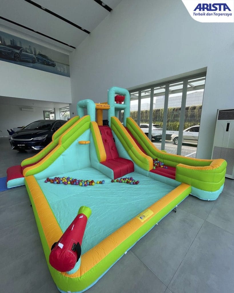 Tidak hanya untuk orang dewasa, “Beyond Boundaries” juga memanjakan keluarga dengan menyediakan area bermain anak yang dilengkapi dengan bouncy castle. Area ini dirancang khusus untuk memberikan hiburan dan kesenangan bagi anak-anak yang datang bersama orang tua mereka. Dengan bouncy castle yang aman dan menyenangkan, anak-anak dapat bermain sambil orang tua menikmati berbagai aktivitas dan inovasi yang ditawarkan BYD Arista. Fasilitas ini hanya tersedia di BYD Arista Summarecon dan BYD Arista BSD.