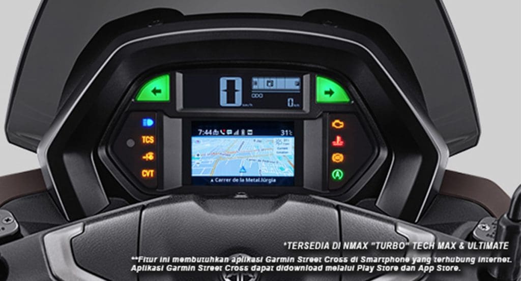 Berbagai fitur canggih dan terbaik untuk mendukung kebutuhan berkendara konsumen turut disematkan pada NMAX “TURBO”. Seperti penggunaan layar Infotainment Display* yang informatif dan menghibur. Melalui fitur ini, pengendara dapat megkontrol pemutaran musik dari smartphone, mendapatkan informasi perkiraan cuaca, fungsi riding mode serta idikator Y-shift dan lain sebagainya. Untuk memudahkan pengendara melakukan touring dan mengeksplorasi tempat-tembat baru, motor ini juga disematkan Navigation System* dari Garmin Street Cross yang dapat menampilkan peta digital dengan petunjuk arah pada layar Infotainment display.