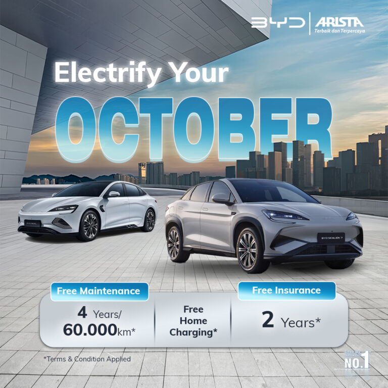 Nikmati kemudahan berkendara listrik bersama BYD — dengan Free Maintenance hingga 4 tahun/60.000 km, Free Insurance 2 tahun, dan Free Home Charging.