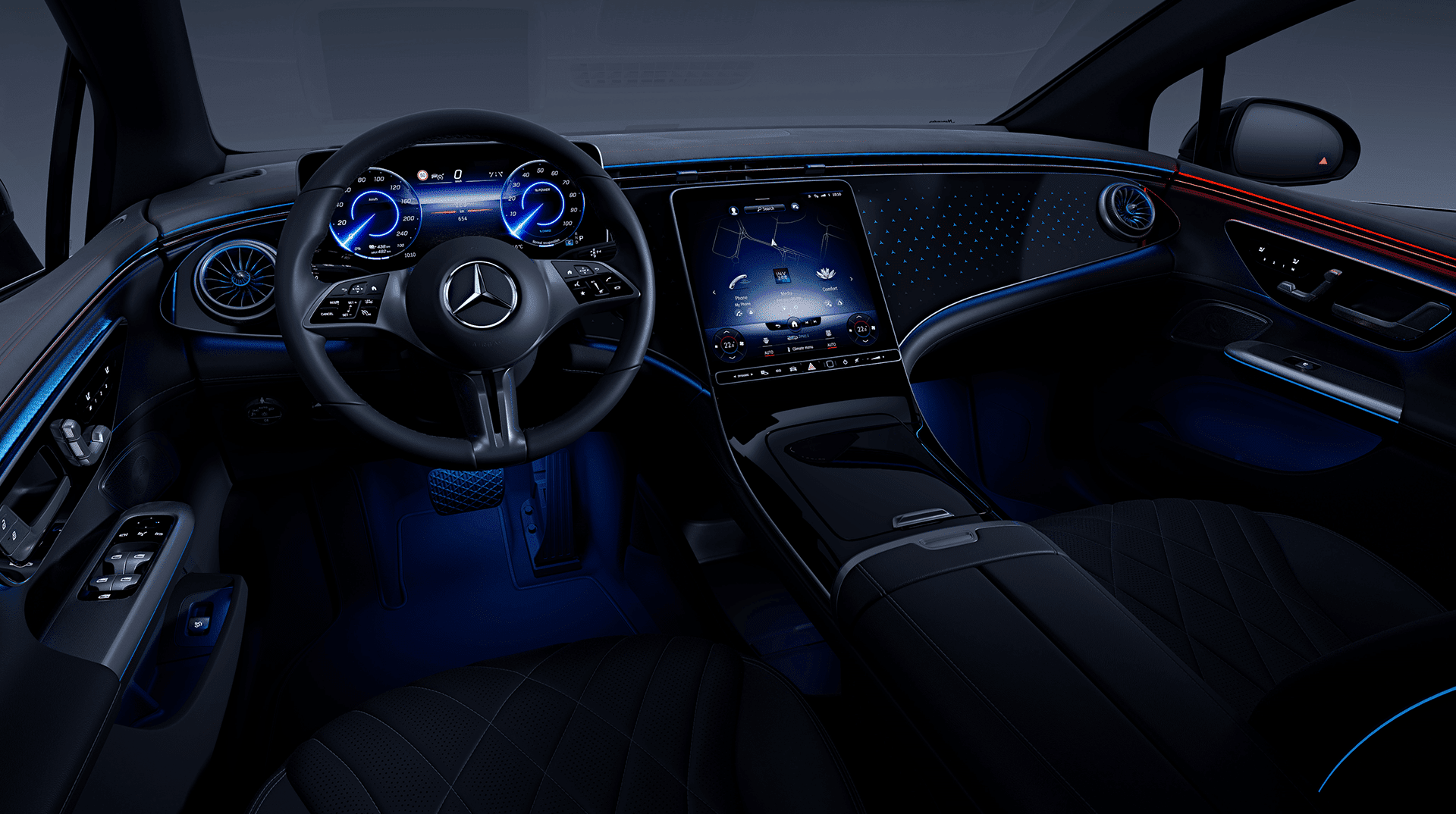 MBUX Hyperscreen (optional), Augmented Reality Navigation, Traffic Jam Assist, Surround View System, Ambient Lighting, Dual-Zone Climate Control, Wireless Charging Pad, Power Tailgate, Heated and Ventilated Front Seats, Power-Adjustable Seats with Memory, Panoramic Sunroof, MBUX System with Voice Control, Apple CarPlay and Android Auto, Adaptive Cruise Control, Keyless-Go System