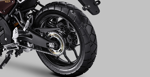 Dual Purpose Tubeless Tire, Aluminium Rear Arm, Deltabox Frame
